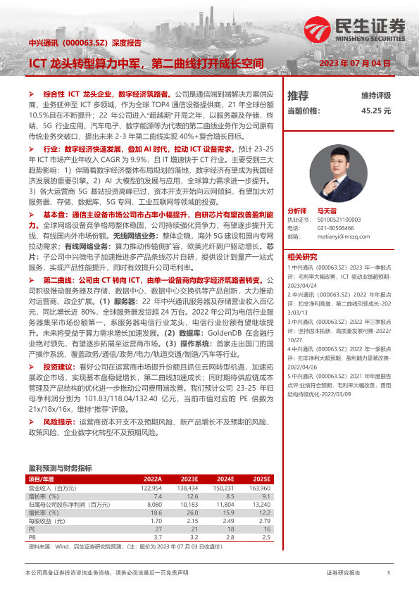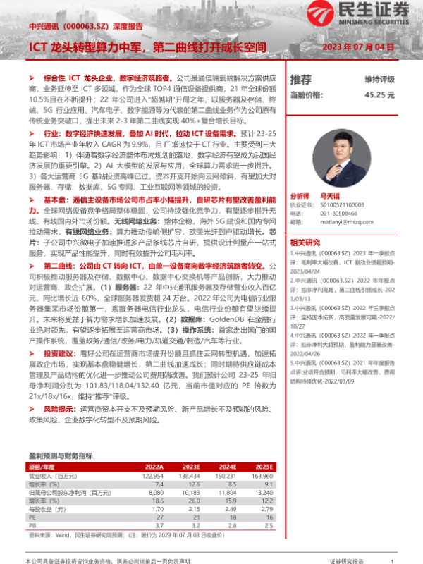 【民生证券】【20230704】20230704-民生证券-中兴通讯-000063.SZ-深度报告:ICT龙头转型算力中军,第二曲线打开成长空间-30页