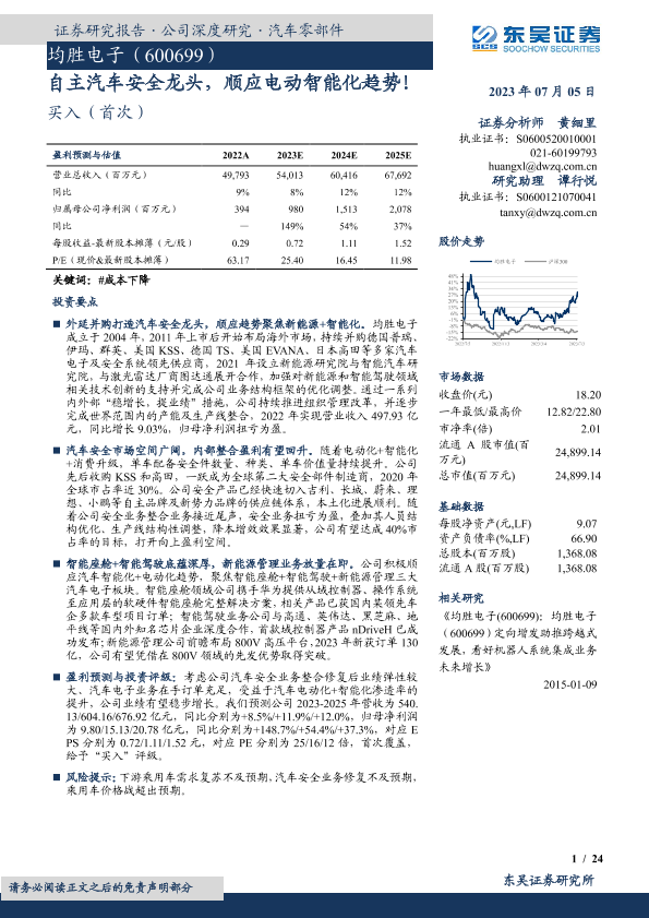 【东吴证券】【20230705】均胜电子(600699):自主汽车安全龙头,顺应电动智能化趋势!-24页