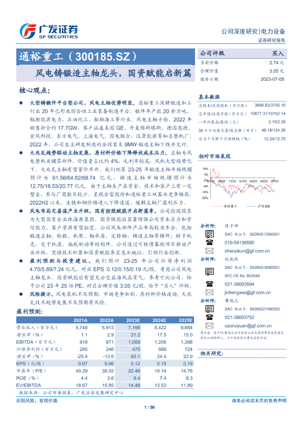 【广发证券】【20230705】通裕重工(300185.SZ):风电铸锻造主轴龙头,国资赋能启新篇-36页
