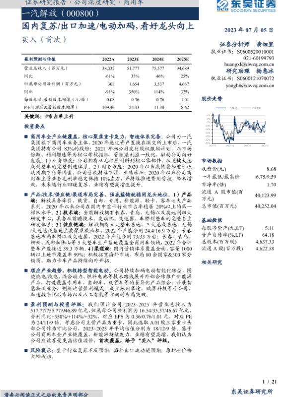 【东吴证券】【20230705】国内复苏 出口加速 电动加码,看好龙头向上-21页
