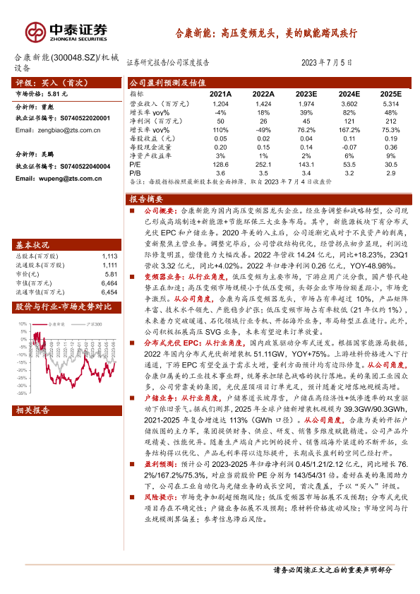 【中泰证券】【20230705】合康新能:高压变频龙头,美的赋能踏风疾行-39页