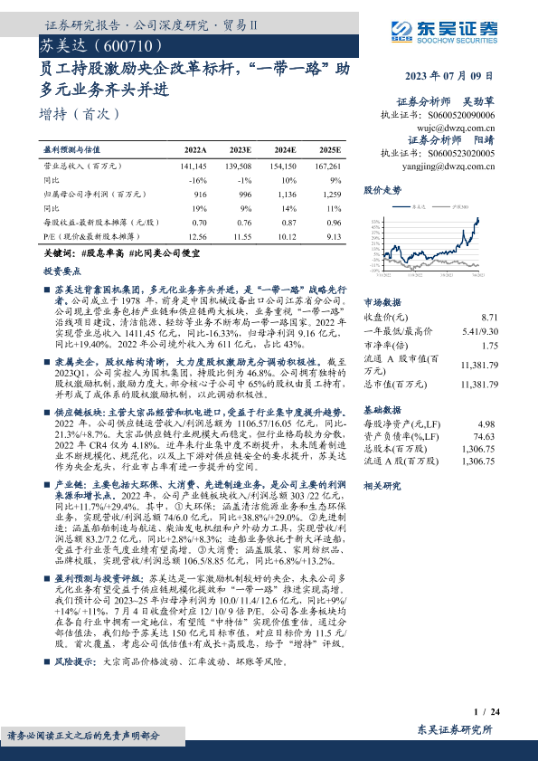 【东吴证券】【20230709】苏美达-600710.SH-员工持股激励央企改革标杆,“一带一路”助多元业务齐头并进-24页