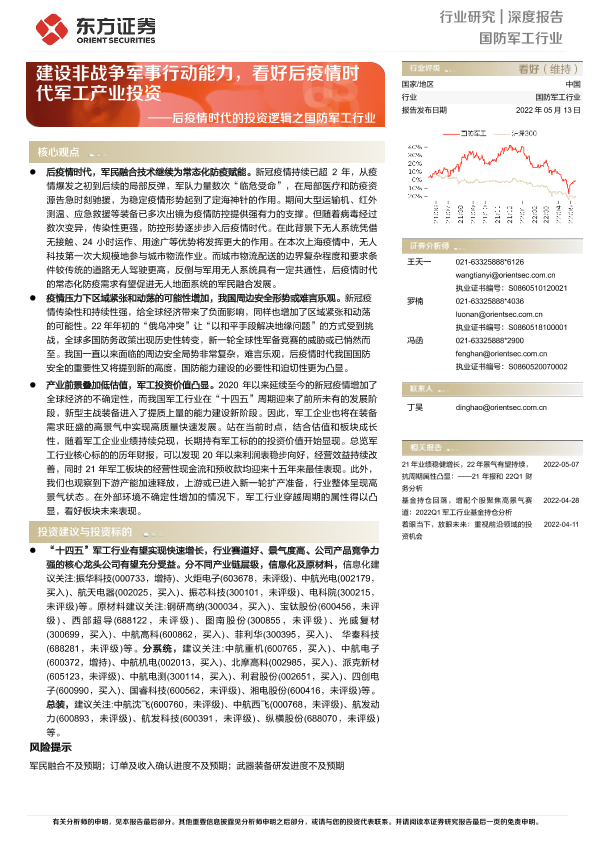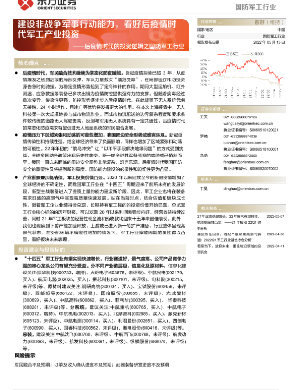 【东方证券】【20220513】后疫情时代的投资逻辑之国防军工行业:建设非战争军事行动能力,看好后疫情时代军工产业投资-20页