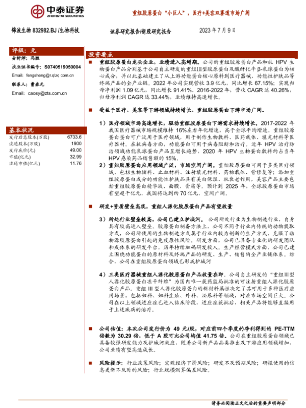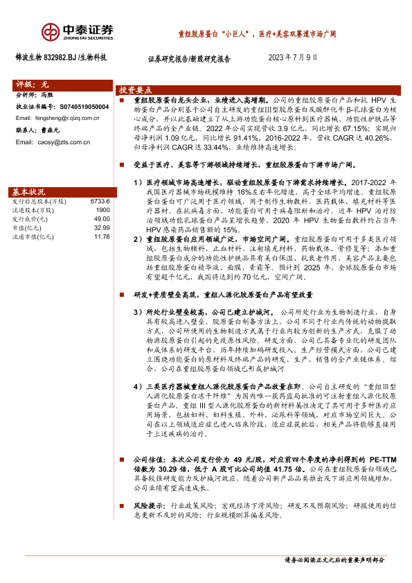 【中泰证券】【20230709】重组胶原蛋白“小巨人”,医疗+美容双赛道市场广阔-17页