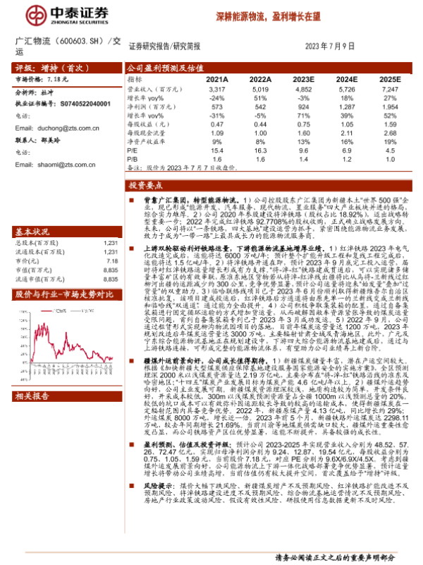 【中泰证券】【20230709】20230709-中泰证券-广汇物流-600603.SH-深耕能源物流,盈利增长在望-24页