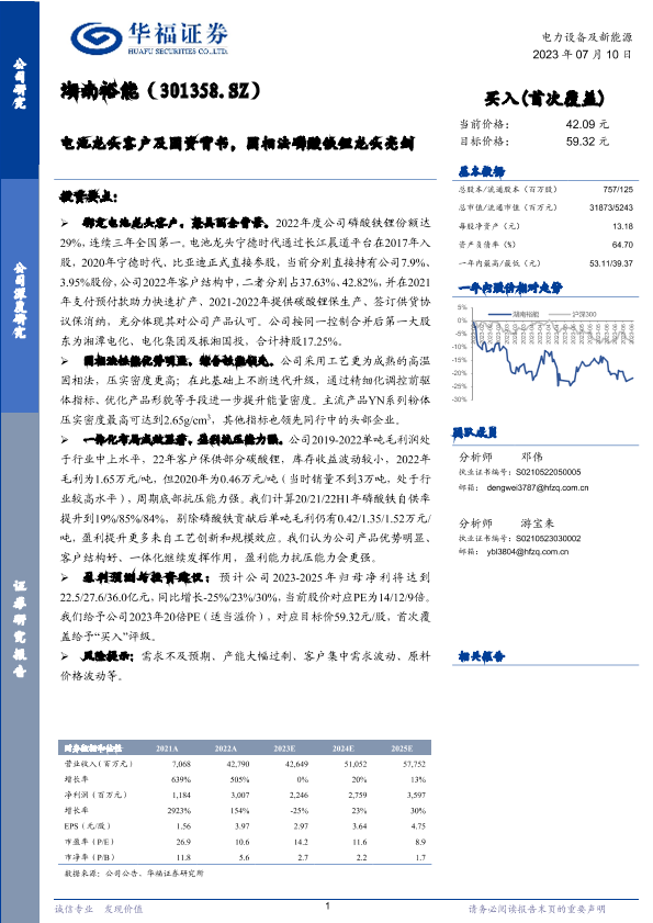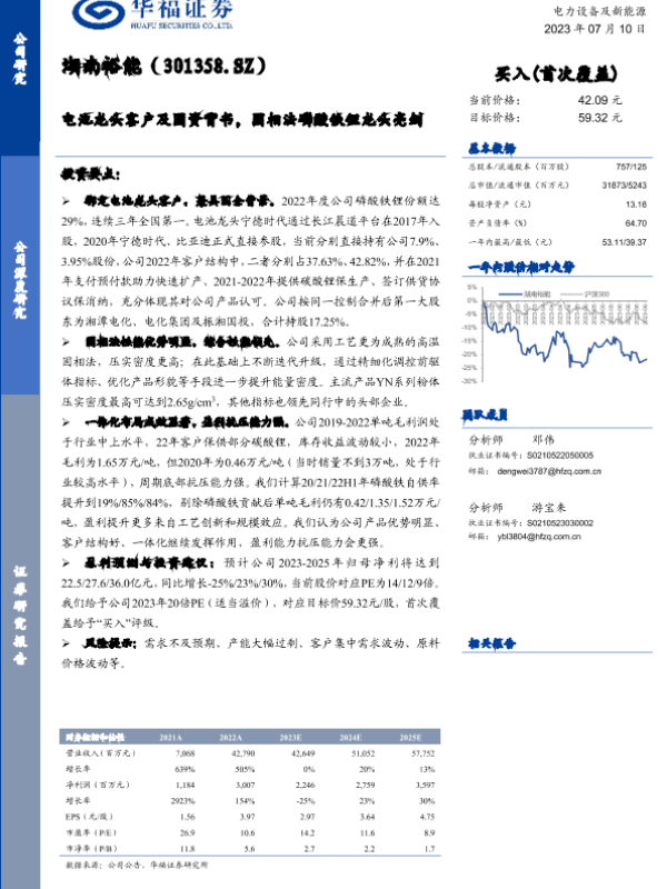 【华福证券】【20230710】湖南裕能-电池龙头客户及国资背书,固相法磷酸铁锂龙头亮剑-21页