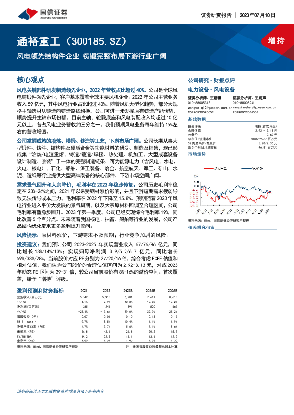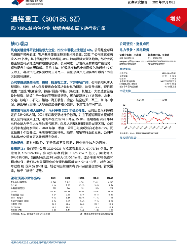 【国信证券】【20230710】通裕重工-风电领先结构件企业 铸锻完整布局下游行业广阔-28页