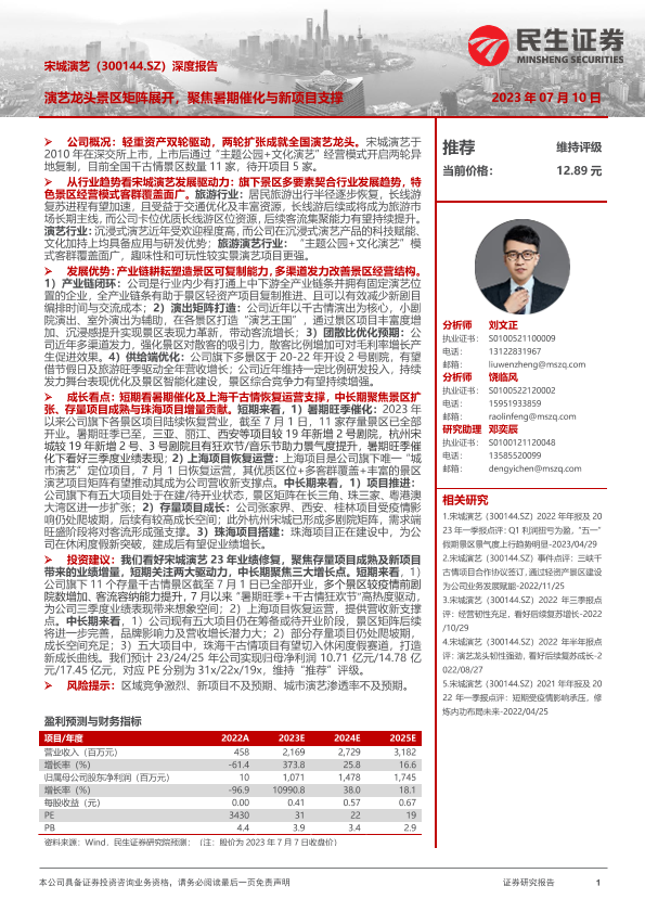 【民生证券】【20230710】20230710-民生证券-宋城演艺-300144.SZ-深度报告:演艺龙头景区矩阵展开,聚焦暑期催化与新项目支撑-39页