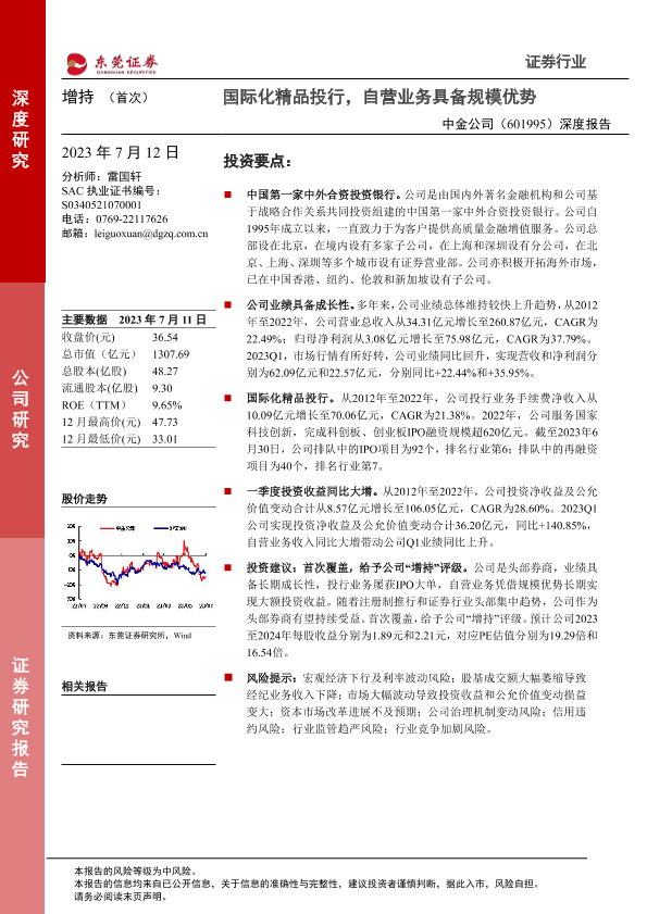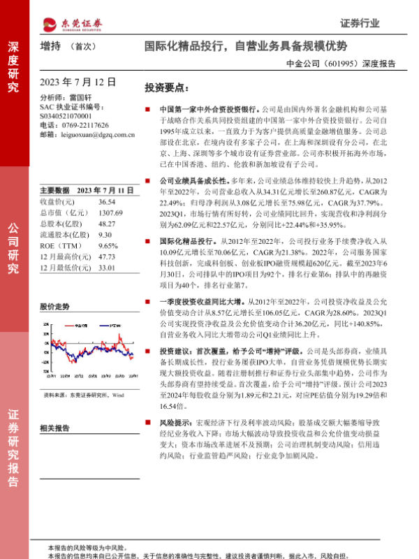 【东莞证券】【20230712】20230712-东莞证券-中金公司-601995.SH-深度报告:国际化精品投行,自营业务具备规模优势-24页
