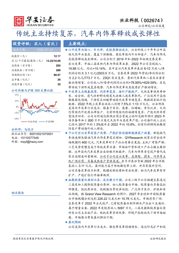 业绩增长 投资评级 汽车内饰革 皮革行业 胶原蛋白