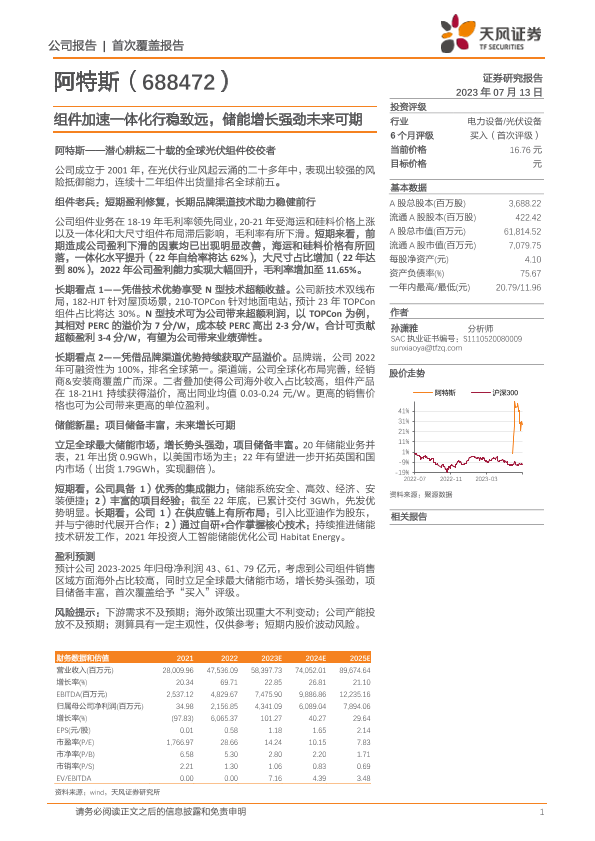 【天风证券】【20230713】组件加速一体化行稳致远,储能增长强劲未来可期-26页