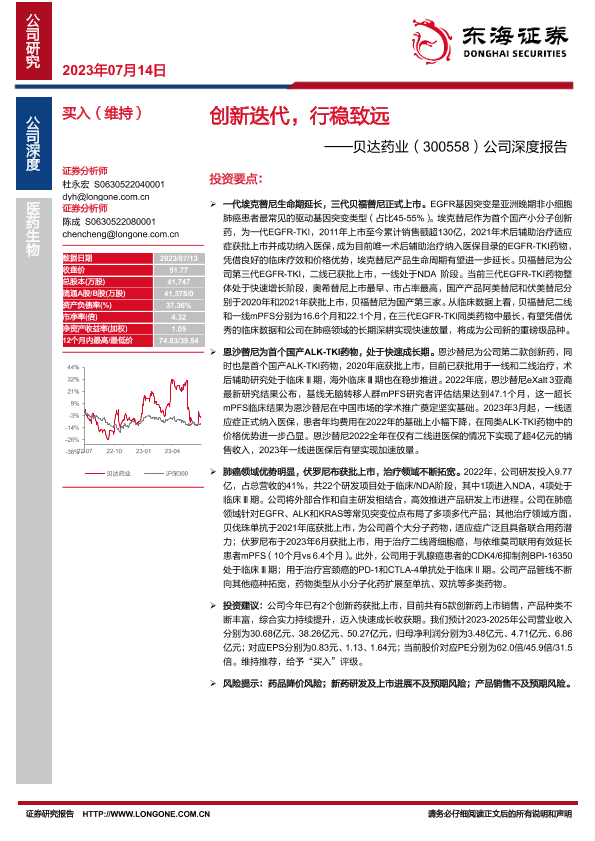 【东海证券】【20230714】创新迭代,行稳致远——贝达药业(300558)公司深度报告-43页