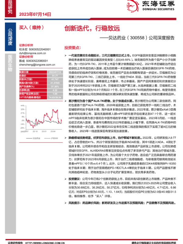 创新药 医药生物 肺癌治疗 证券分析 贝达药业
