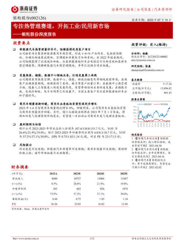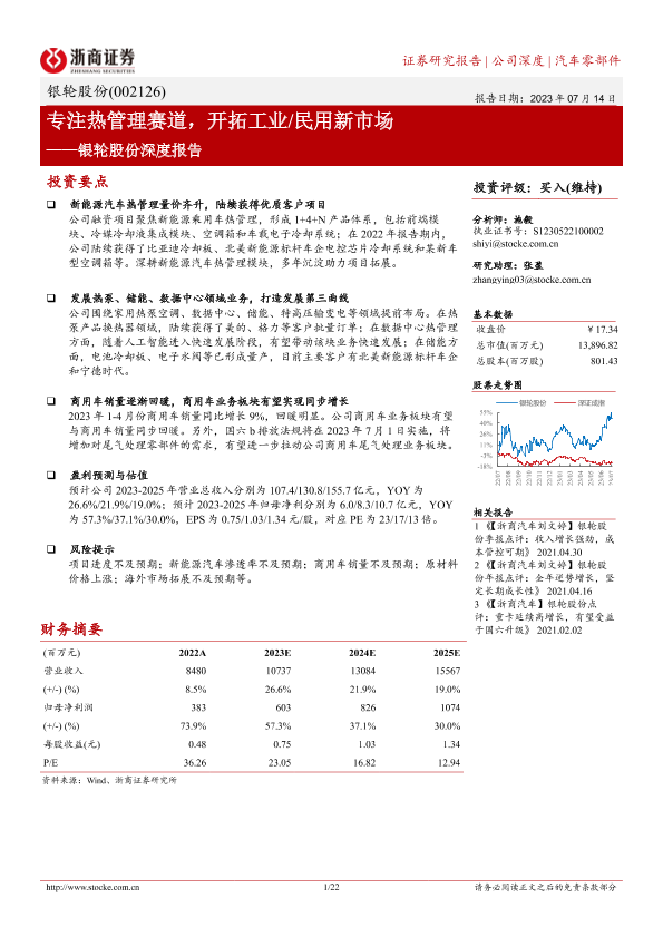 【浙商证券】【20230714】银轮股份深度报告:专注热管理赛道,开拓工业 民用新市场-22页