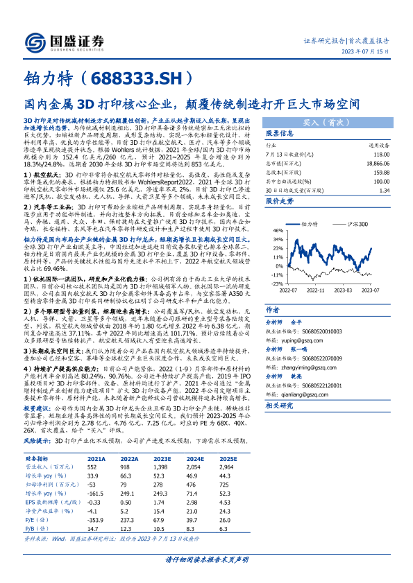 【国盛证券】【20230715】国内金属3D打印核心企业,颠覆传统制造打开巨大市场空间-22页