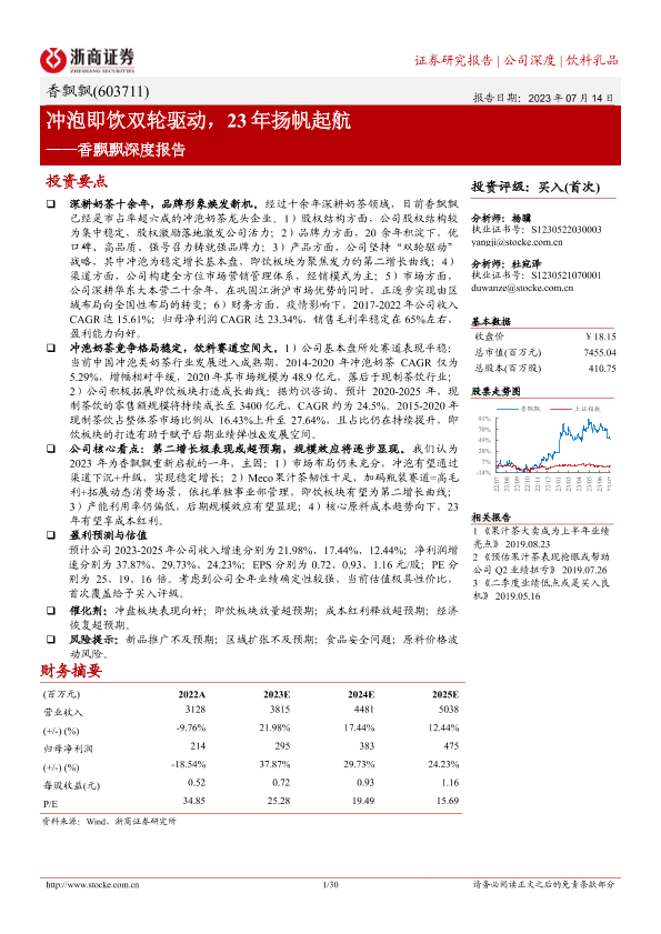 【浙商证券】【20230714】香飘飘深度报告:冲泡即饮双轮驱动,23年扬帆起航-30页