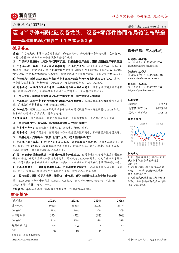 【浙商证券】【20230714】晶盛机电深度报告之【半导体设备】篇:迈向半导体+碳化硅设备龙头,设备+零部件协同布局铸造高壁垒-36页