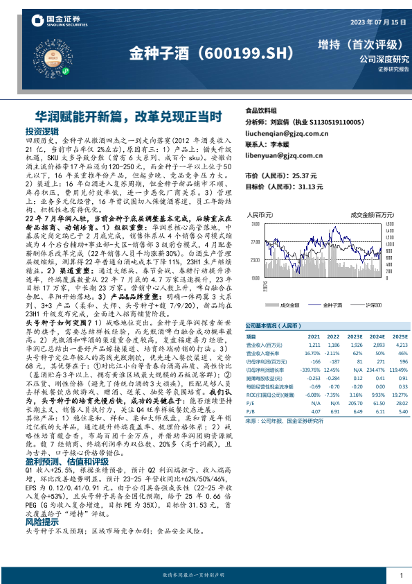 【国金证券】【20230715】国金证券-金种子酒-华润赋能开新篇,改革兑现正当时-27页