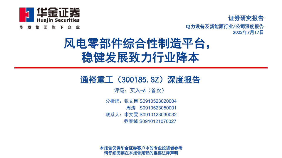 【华金证券】【20230717】通裕重工深度报告:风电零部件综合性制造平台,稳健发展致力行业降本-55页