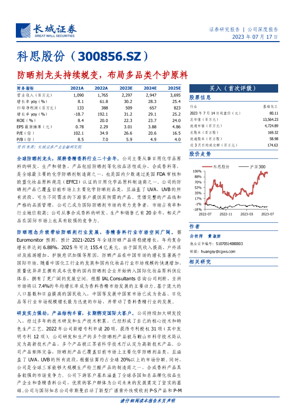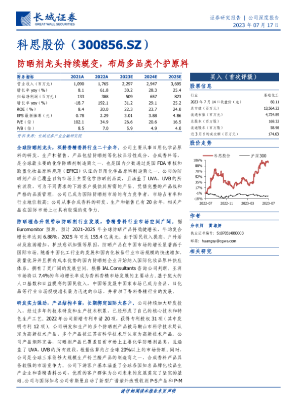 【长城证券】【20230717】科思股份-防晒剂龙头持续蜕变,布局多品类个护原料-27页