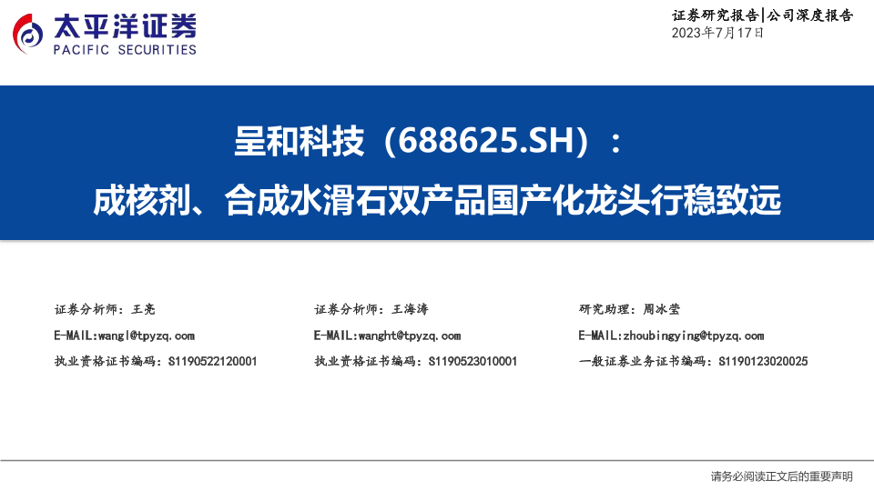 【太平洋证券】【20230717】呈和科技:成核剂、合成水滑石双产品国产化龙头行稳致远-47页