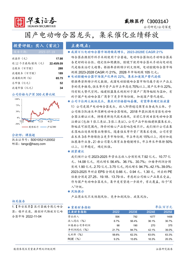 【华安证券】【20230719】国产电动吻合器龙头,集采催化业绩释放-23页