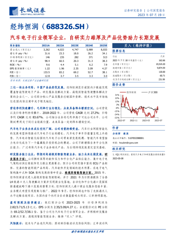 【长城证券】【20230719】汽车电子行业领军企业,自研实力雄厚及产品优势助力长期发展-38页