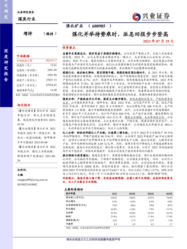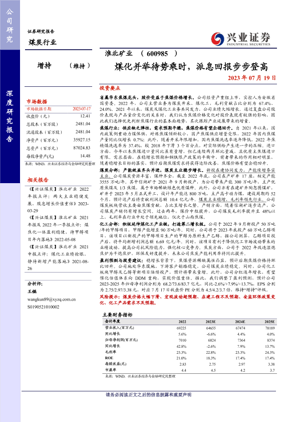 【兴业证券】【20230719】20230719-兴业证券-淮北矿业-600985.SH-煤化并举待势乘时,派息回报步步登高-27页