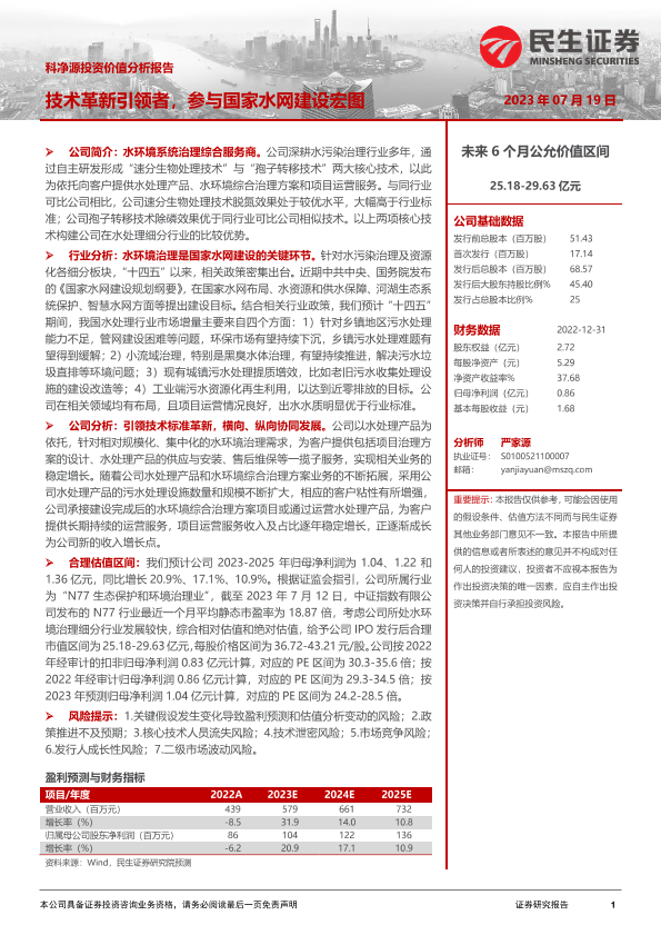 【民生证券】【20230719】科净源投资价值分析报告:技术革新引领者,参与国家水网建设宏图-55页