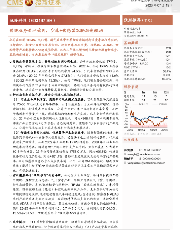 【海通证券】【20230719】保隆科技-传统业务盈利稳固,空悬+传感器双轮加速驱动-33页