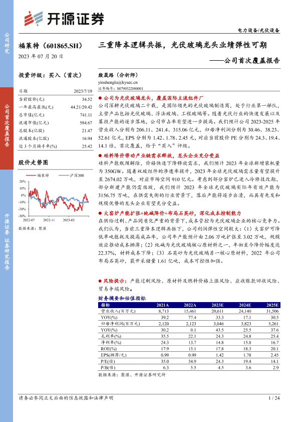 【开源证券】【20230720】20230720-开源证券-福莱特-601865.SH-公司首次覆盖报告:三重降本逻辑共振,光伏玻璃龙头业绩弹性可期-24页