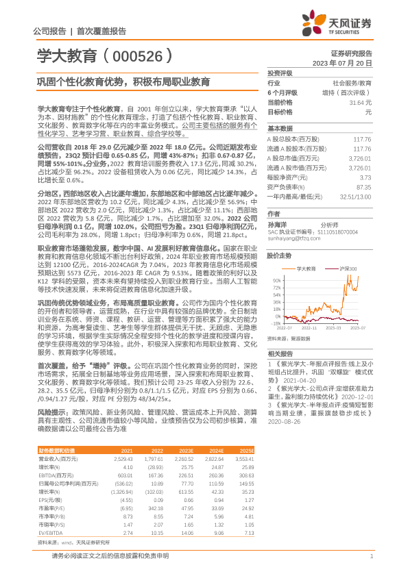 【天风证券】【20230720】学大教育-000526.SZ-巩固个性化教育优势,积极布局职业教育-16页