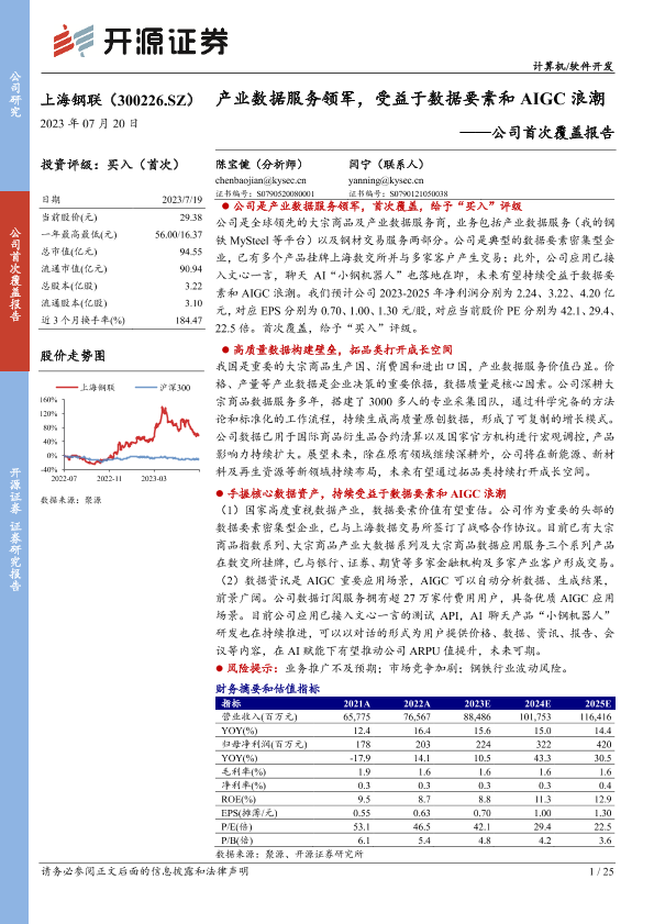 【开源证券】【20230720】20230720-开源证券-上海钢联-300226.SZ-公司首次覆盖报告:产业数据服务领军,受益于数据要素和AIGC浪潮-25页