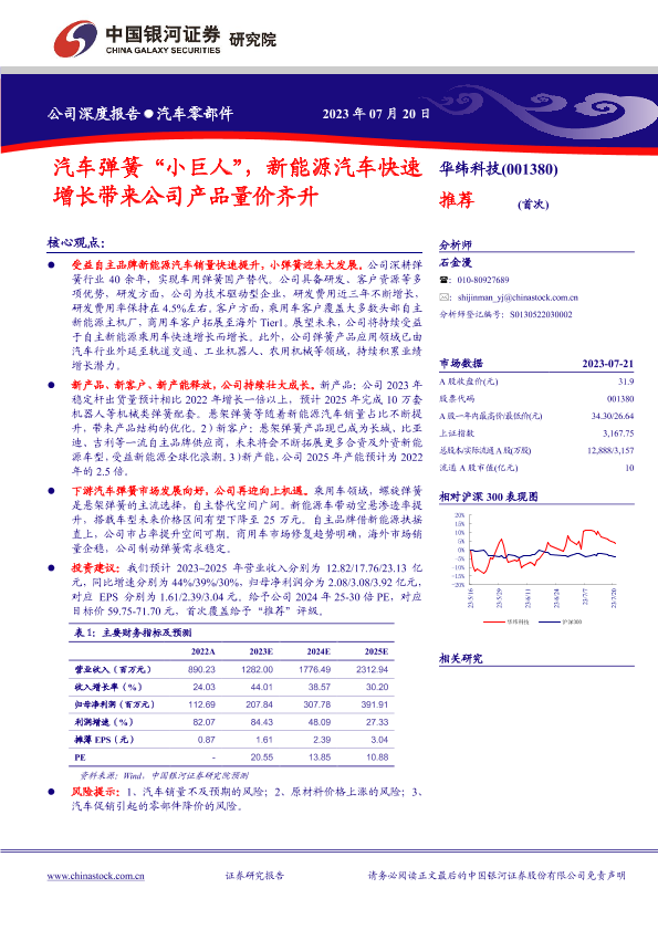 【银河证券】【20230720】汽车弹簧“小巨人”,新能源汽车快速增长带来公司产品量价齐升-24页