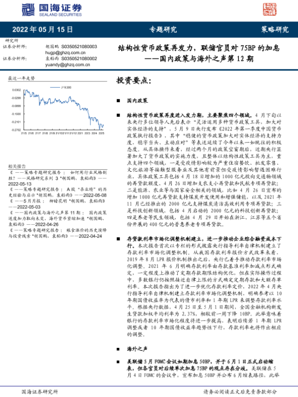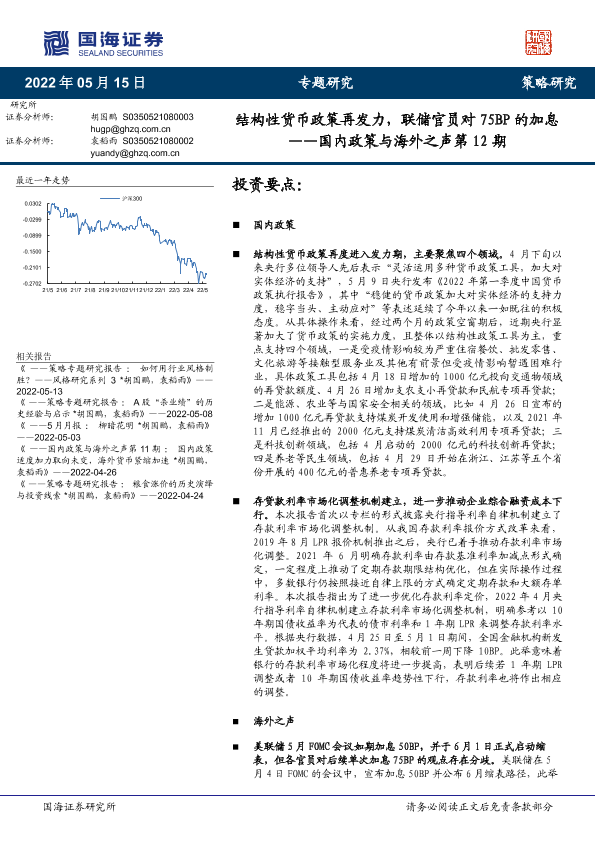 【国海证券】【20220515】国内政策与海外之声第12期:结构性货币政策再发力,联储官员对75BP的加息-24页