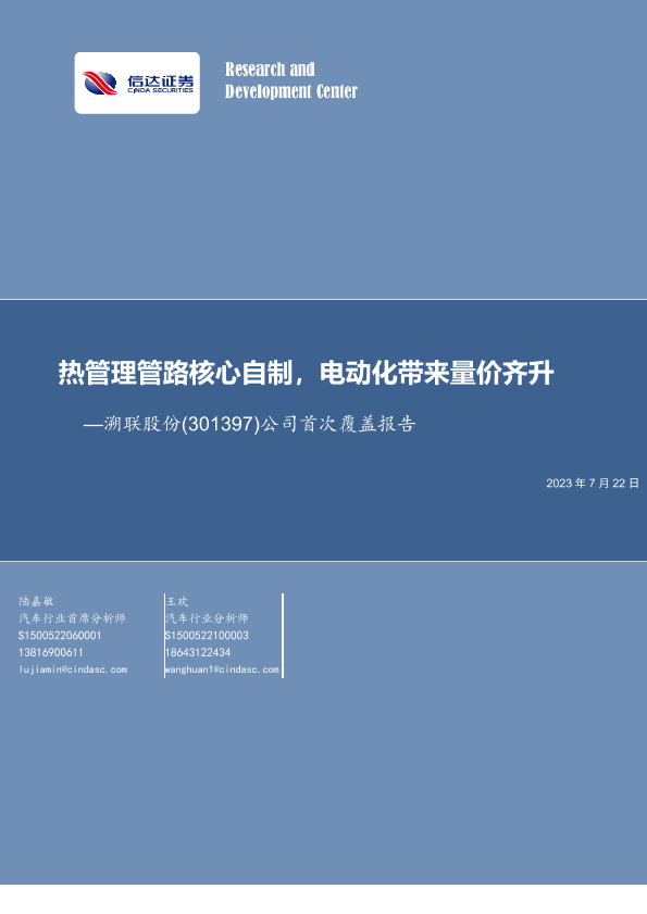 【信达证券】【20230722】溯联股份:热管理管路核心自制,电动化带来量价齐升-34页