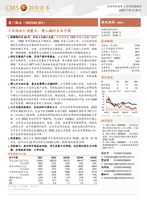 【海通证券】【20230723】20230723-招商证券-厦门钨业-600549.SH-刀具钨丝引领鳌头,稀土磁材未来可期-41页