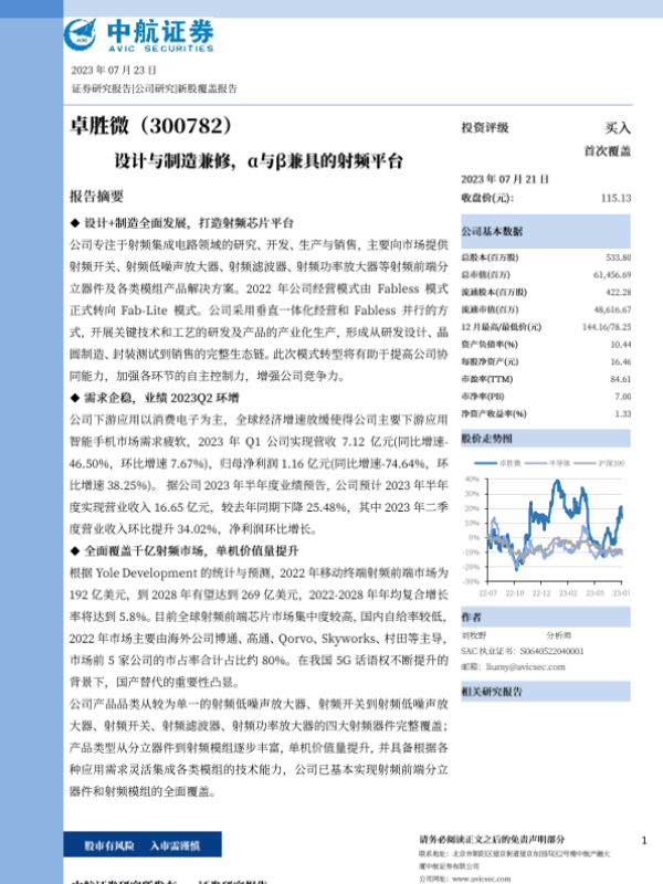 【中航证券】【20230723】设计与制造兼修,α与β兼具的射频平台-25页