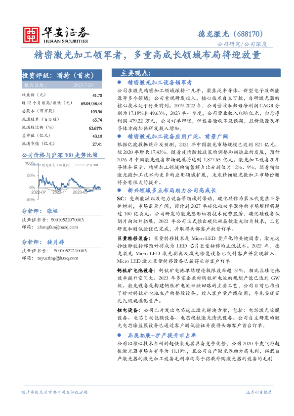 【华安证券】【20230724】精密激光加工领军者,多重高成长领域布局将迎放量-43页