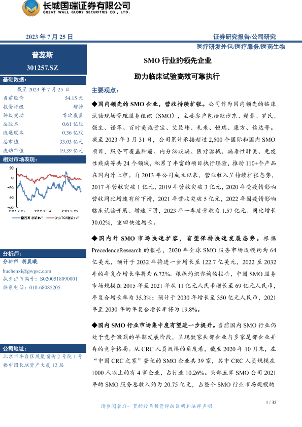【长城国瑞证券】【20230725】SMO行业的领先企业 助力临床试验高效可靠执行-35页
