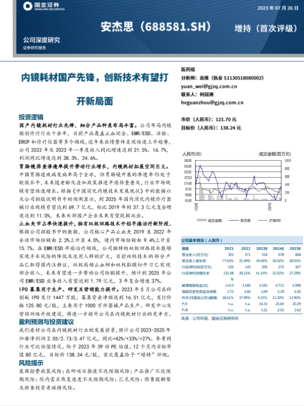 【国金证券】【20230726】国金证券-安杰思-688581.SH-内镜耗材国产先锋,创新技术有望打开新局面-26页