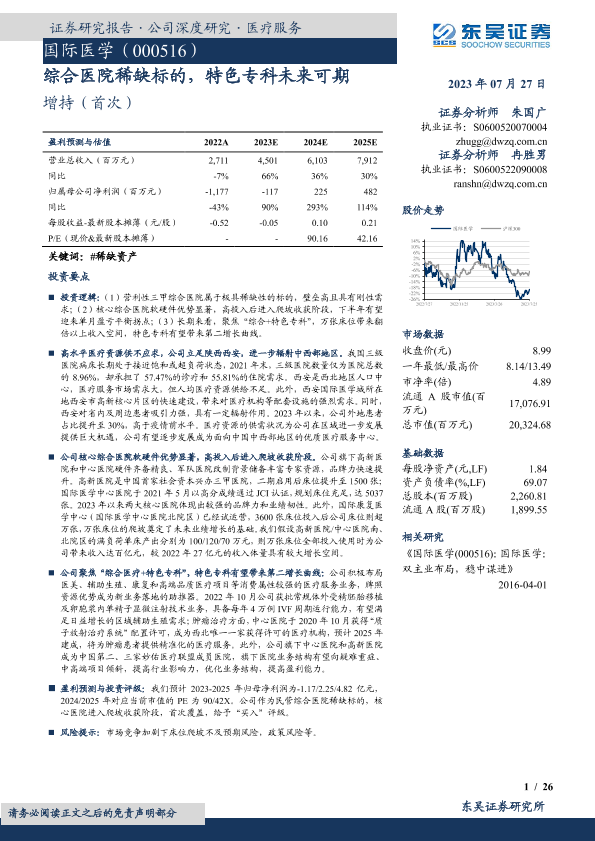 【东吴证券】【20230727】国际医学(000516):综合医院稀缺标的,特色专科未来可期-26页