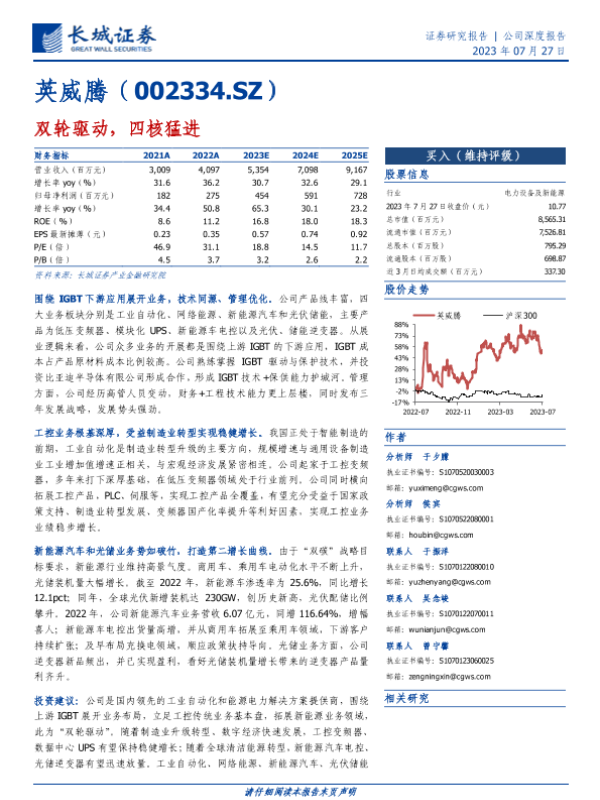 【长城证券】【20230727】英威腾(002334.SZ)双轮驱动,四核猛进-32页