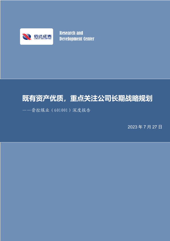 【信达证券】【20230727】20230727-信达证券-晋控煤业-601001.SH-深度报告:既有资产优质,重点关注公司长期战略规划-29页