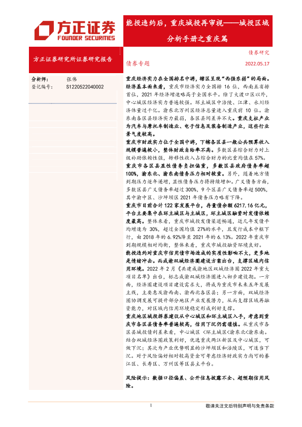 【方正证券】【20220517】城投区域分析手册之重庆篇:能投违约后,重庆城投再审视-30页
