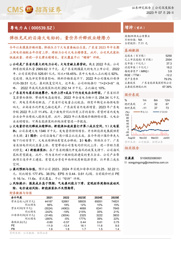 【海通证券】【20230729】20230729-招商证券-粤电力A-000539.SZ-弹性充足的沿海火电标的,量价齐升释放业绩潜力-29页