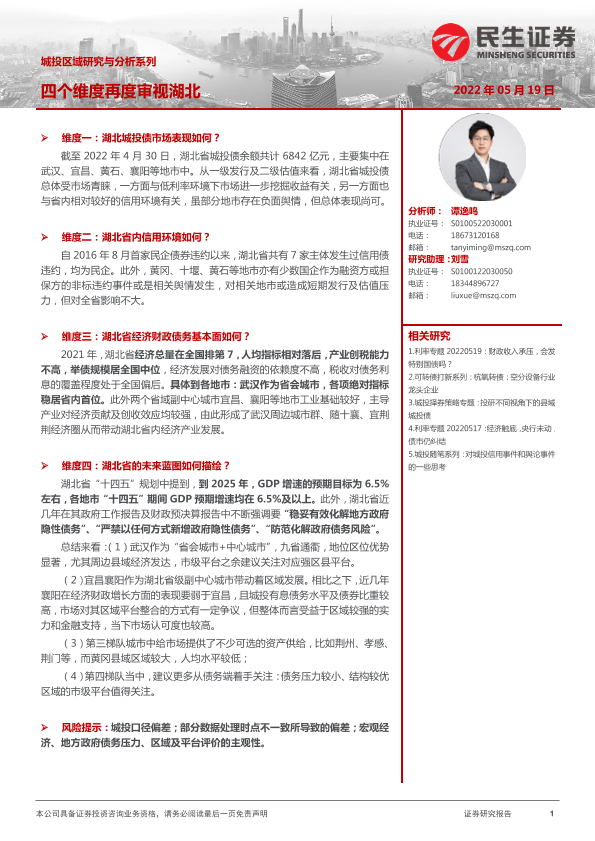 【民生证券】【20220519】城投区域研究与分析系列:四个维度再审视湖北-32页