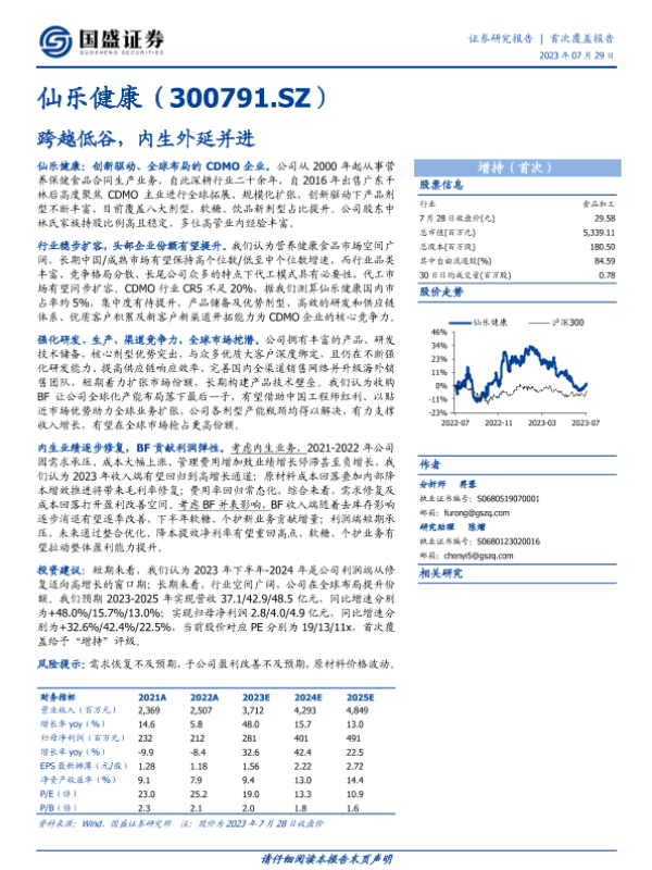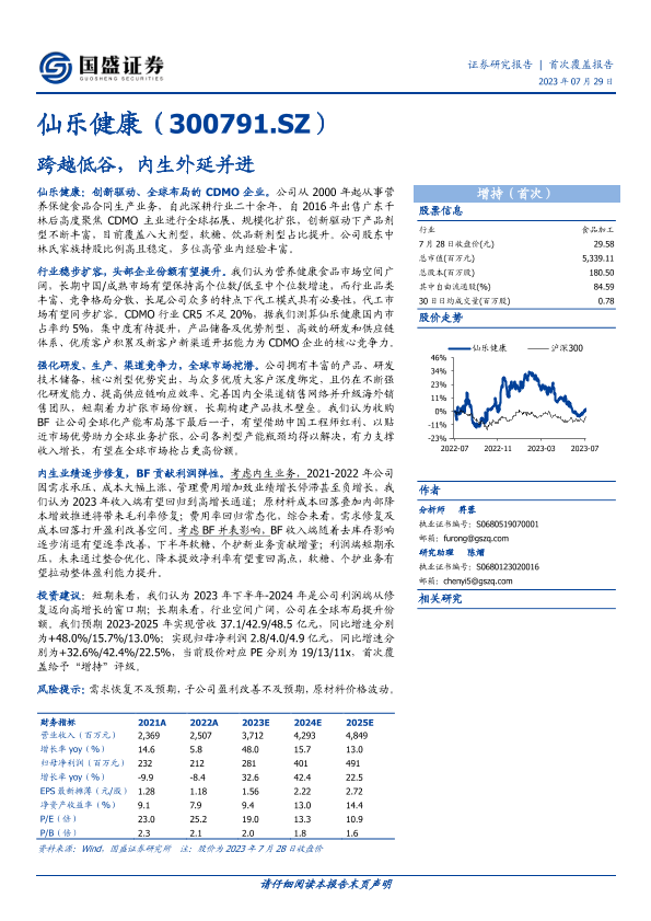 【国盛证券】【20230729】仙乐健康:跨越低谷,内生外延并进-26页