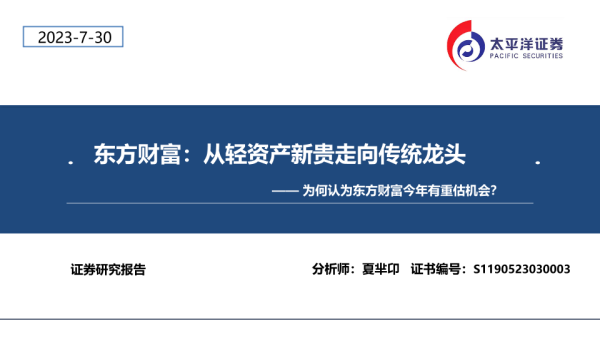 【太平洋证券】【20230730】东方财富:从轻资产新贵走向传统龙头:为何认为东方财富今年有重估机会?-43页