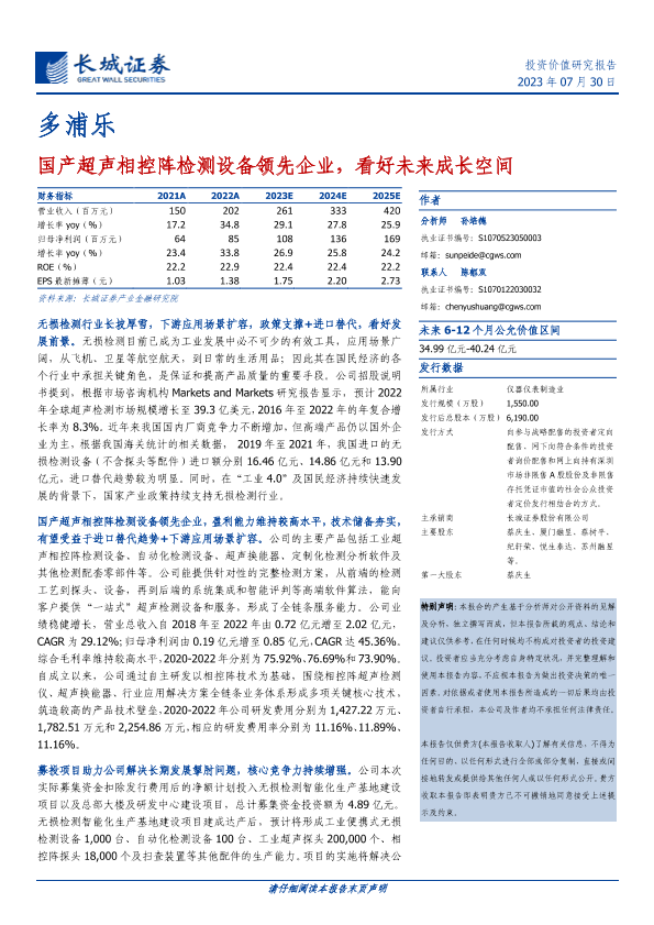 【长城证券】【20230730】多浦乐-301528.SZ-国产超声相控阵检测设备领先企业,看好未来成长空间-81页